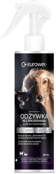 Eurowet Leave-in kondicionáló 200ml - Termékleírás Professzionális revitalizáló balzsam kutyák és macskák számára. Könnyebbé teszi a kifésülést, növeli a szőrzet volumenét és javítja a haj szerkezetét. Kezelhetőbbé teszi a szőrzetet, és megakadályozza a filcek és a csomók kialakulását. Tökéletes minden típusú haj és szőrzet számára. Ajánlott simításra, f