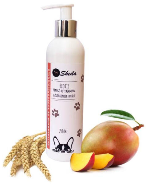 Kiszerelés: 250ml Sheila Exotic Mango Kutyasampon és Szőrkondícionáló Natúr kutyasampon, növényi keratinnal és argán olajjal a szép, ragyogó bundáért. Sheila Exotic Mango Kutyasampon és Szőrkondícionáló Natúr kutyasampon, növényi keratinnal és argán olajjal a szép, ragyogó bundáért. _x0009_ kőolajszármazékot nem tartalmaz _x0009_ pálmaolaj felhasználása nélkül