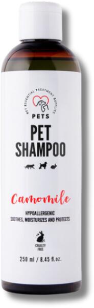 Professzionális sampon kamillakivonattal és panthenollal. Gyengéden és alaposan tisztít, nyugtató hatású. Az érdes és száraz hajnak nedvességet és rugalmasságot ad. Fokozza a szőrzet fényét és színét. Új szintre emeli kedvence minden fürdetését. Termékünk a gyógynövények és természetes összetevők esszenciája, amely kiváló ápolást biztosít kedvence számára i