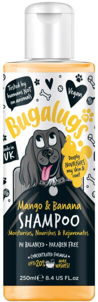 Bugalugs Mangó és Banán Kutyasampon Kiszerelés : 250 ml Hígítási arány: 10:1-hez, nagyon sokáig elég! 8 hetes kortól! Bugalugs?! Milyen fura név! A Bugalugs termékek Észak-Angliában készülnek a Lake District forrásvizéből és egész Európában prémium márkának számítanak a professzionális kutyaszalonokban! A Bugalugs (csak hogy szokd a nevet:) termékek legfeltűnőbb je