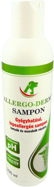 Az Allergo-Derm egy gyógyhatású, hipoallergén sampon kutyák és macskák részére. A termék felhasználási területének rövid leírása, felhasználási javaslat, javallatok : Az Allergo-Derm hipoallergén sampon kutyák és macskák bőrének zsírosodással, korpázással, viszketéssel járó elváltozásainak megszüntetésére, illetve bőrgyógyászati megbetegedéseinek (pyoderma,