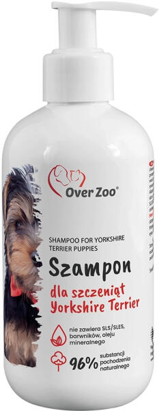 OVER ZOO Yorkshire Terrier kölyök sampon 250ml - Termékleírás Finom sampon yorkshire terrier kölyökkutyáknak kasmírgyapjú fehérjékkel. Tökéletesen táplálja a hajat és megakadályozza a statikus csomósodást. Az enyhe mosószerek nem irritálják a kutya bőrét, miközben alaposan átmossák és hidratálják azt. Az allantoin enyhíti az esetleges irritációkat és védi a fiat
