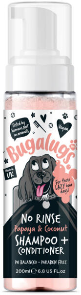 Bugalugs Öblítés Nélküli Kutyasampon Illat : Kókusz és Papaya Kiszerelés : 200 ml 8 hetes kortól! Fél a kutyusod a fürdéstől? Esetleg nem akarod felrobbantani a fürdőszobát, pedig már rá férne a bundájára egy kis frissítés? A Bugalugs Öblítésmentes kutyasampon ezt a problémát oldja meg. Ez egy szuper illatú tisztító hab , amit elég a bundára vagy a tenyeredre fújn