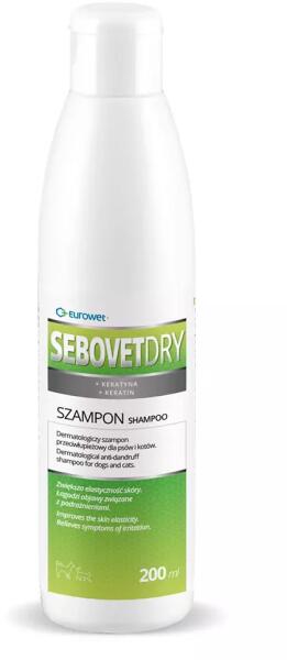 Eurowet Sebovet száraz sampon 200ml - Termékleírás A Sebovet - Dry egy kifejezetten korpásodás tüneteit mutató kutyák és macskák mosására alkalmas állatorvosi dermokozmetikum. A samponban található hatóanyagok támogatják a felhám megfelelő állapotát, növelik a bőr rugalmasságát és enyhítik a bőrirritációval járó tüneteket. Eurowet Sebovet száraz sampon 200ml - M