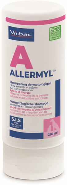 Bőrgyógyászati sampon száraz, irritált és atópiás bőrreA VIRBAC, az állatbőrgyógyászatban vezető szerepet betöltő cég az egyes állatok egyedi igényeihez igazított bőrgyógyászati termékek teljes választékával rendelkezik. Az Allermyl ® egy pH-semleges sampon, amelyet a bőr barrier rendellenességében szenvedő kutyák és macskák számára fejlesztettek ki. a termék
