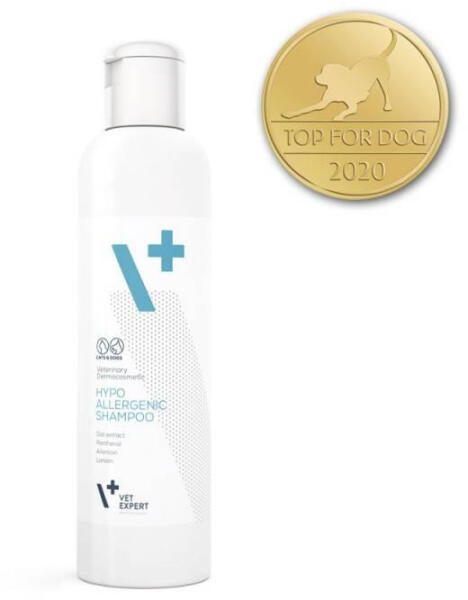 VET EXPERT hipoallergén sampon 250ml Hipoallergén sampon kutyáknak és macskáknakTulajdonságok: Hipoallergén sampon kutyák és macskák számára. Az irritációra, szenzibilizációra és szárazságra hajlamos, érzékeny, finom bőrű állatok számára. Dermokozmetikai sampon zabmagkivonattal, kutyák és macskák számára más samponokkal szembeni intolerancia esetén is kiváló. Has