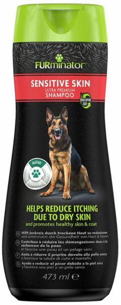 Ha kutyája száraz viszkető bőrtől szenved itt az ideje egy kis wellnessnek - mégpedig az otthoni fürdőszobában A FURminator Sensitive Skin Ultra Premium sampont speciálisan érzékeny négylábúak igényeire szabták Tápláló és hidratáló összetevőinyugtatják a száraz irritált bőrt míg a körömvirág-kivonat és a mentolhűsítő hatásaenyhíti a viszketéstAz innovatív O