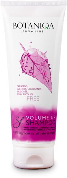 BOTANIQA Volume Up sampon 250ml - Termékleírás A sampon a szőrzet térfogatának növelésére szolgál. Köszönhetően a pamutkivonat használatának, amely az egyes hajszálak szétválasztásával növeli a hangerőt. A speciálisan kifejlesztett Botaniqa Complexet tartalmazza, amely tovább táplálja és megakadályozza a csomók kialakulását. Az eredmény egy feszes, táplált és ter