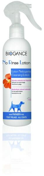 A No Rinse öblítés nélküli tisztító oldat természetes sarkantyúvirág kivonattal készült, mely tisztít és dezodorál anélkül, hogy a szőrzetből ki kellene öblíteni. Mancstörléshez, sétálás utáni áttörléshez ajánljuk, minden szőrtípusra, kutyák számára. A készítmény összetétele: Tisztított víz, nátrium-lauret-szulfát. glicerin, vízi torma, parfüm chevref
