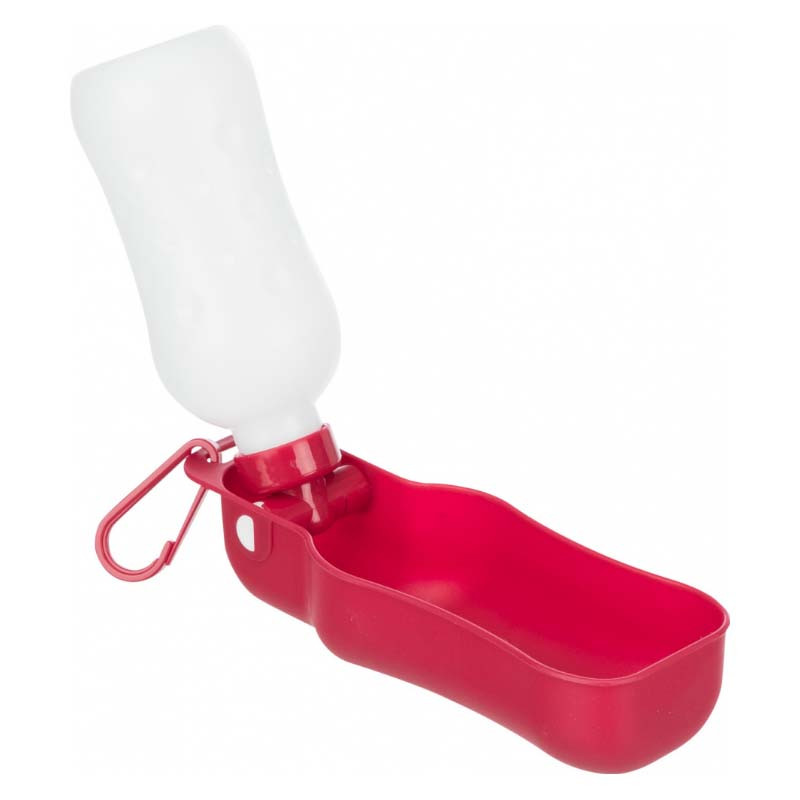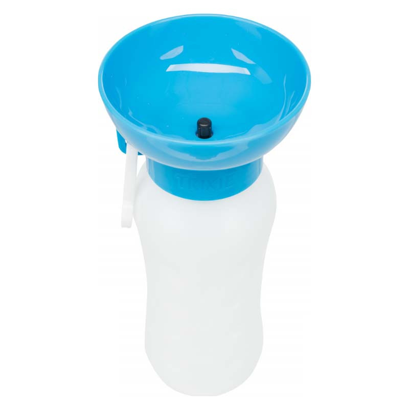 Trixie Bottle with Drinking Bowl - Műanyag úti itató, tállal (több féle színben) kutyák részére (0,55l) ha az üveget megnyomják, a víz a tál felső részébe folyik nyomógombos szeleppel a tál felső részének nyitásához/zárásához karabinerrel rögzíthető pl. az övre műanyag Trixie Bottle with Drinking Bowl - Műanyag úti itató, tállal (több féle színben) kutyák r
