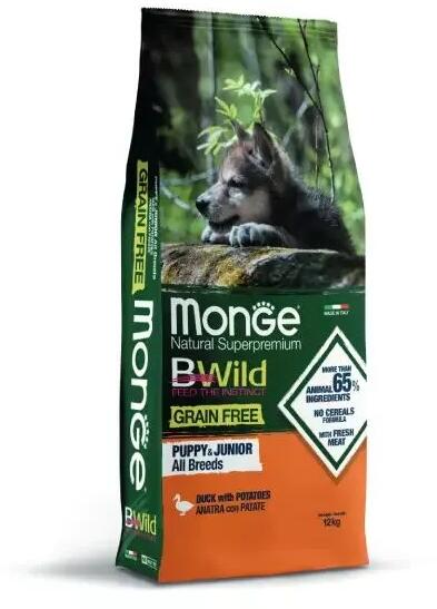 Monge BWild Grain Free Dog Puppy, Junior - Duck, PotatoTeljes értékű és kiegyensúlyozott, gabonamentes szárazeledel kölyök kutyák számára kacsával és burgonyával. Az olyan válogatott, nem gabonából származó szénhidrátforrásoknak köszönhetően, mint a burgonya és a lencse, támogatja kutyája egészségét. Mangán-oligoszacharidokkal (M. O. S. ) és Xylo-oligoszacharidokka
