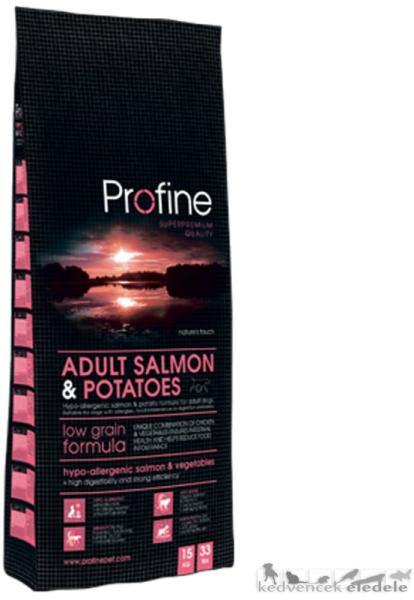 Profine Adult Salmon 15kgAjánlott: Faj: KutyaKor: FelnőttMéret: Kistestű, Közepes testű, NagytestűSpeciális: Allergiás, Jellemzők: Száraztáp, Hipoallergén PROFINE ADULT SALMON & POTATOES Hipoallergén kutyatáp felnőtt kutyáknak, lazaccal és burgonyával. Választék: 3, 15kg Elsődlegesen étel-allergiával, táplálék–intoleranciával vagy emésztési problémával küzdő