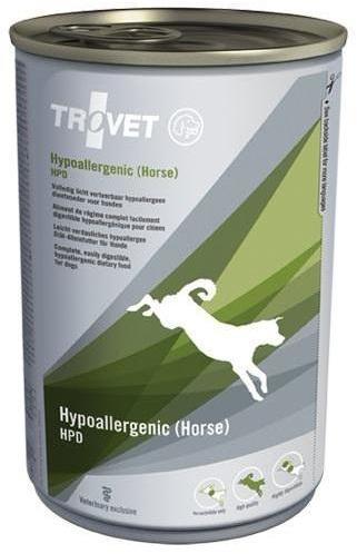 A Trovet Hypoallergenic Horse konzerv egy teljes értékű , diétás nedves eledel táplálékérzékenységben szenvedő kutyák részére, ízletes lóhússal és burgonyával . A Trovet lóhúsos nedves eledele ételallergia vagy ételintolerancia esetén ajánlott. Ez a táp megszünteti az allergiával járó tüneteket , úgy mint a bőr-és szőrproblémákat, az emésztési panaszokat, a