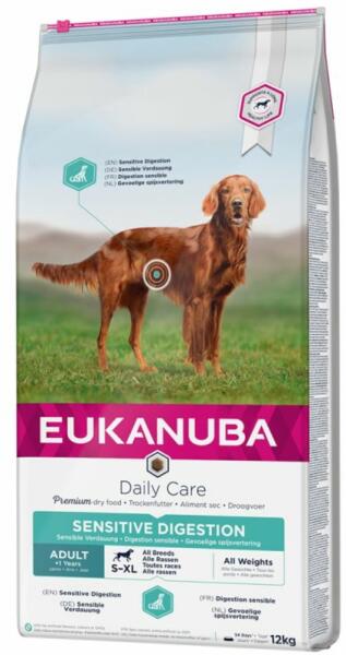 Könnyen emészthető, teljes értékű és ízletes: az Eukanuba Daily Care Adult Sensitive Digestion bármely fajtájú felnőtt kutya számára alkalmas, teljes értékű száraztáp, melyet különösen jó emészthetőség jellemez. A kutyatáp minőségi, jól emészthető fehérjeforrásként csirkét tartalmaz, szénhidrátforrásként pedig ugyancsak jól emészthető rizs kerül az elede