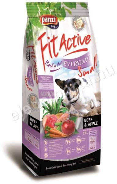 A Fit Active Everyday Beef&Apple Small egy tökéletes és kiegyensúlyozott prémium minőségű szárazeledel átlagos aktivitású, kistestű kutyák számára. Csúcsminőségű eledel könnyen emészthető húsokból megfelelő mennyiségű zsírral és szénhidráttal. Tartalmazza mindazokat az összetevőket – ásványi anyagokat, vitaminokat – melyek biztosítják, kedvence az akt