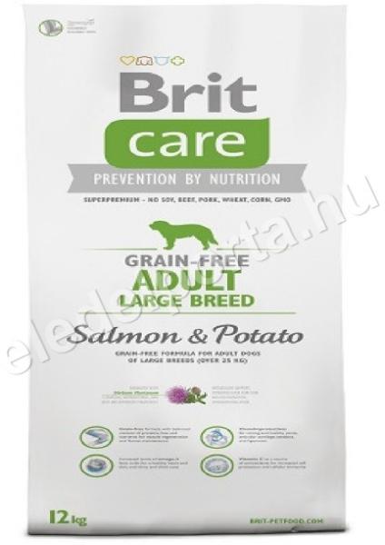 Brit Care Dog Grain-free Salmon Adult Large Breed 3 kg Gabona- és gluténmentes lazacos táp felnőtt nagytestű kutyáknak A Brit Care Dog Grain-free Salmon Adult Large Breed 3 kg prémium minőségű, gabonamentes kutyatáp, amelyet felnőtt nagytestű kutyák számára (25 kg felett) fejlesztettek ki. A táp lazachúst és burgonyát tartalmaz, hogy biztosítsa a kutyája számára a megfelel