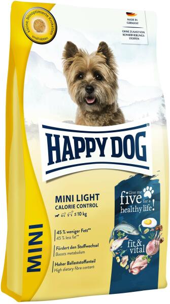A Happy Dog Fit & Vital Mini Light Calorie Control öt különböző fehérjeösszetevőt tartalmaz: Lazac, tengeri hal, tojás, bárányhús és baromfi az egészséges fehérjeválasztékért. A lazac tartalmazza az esszenciális omega-3 és omega-6 zsírsavakat, amelyek jót tesznek a bőrnek és a szőrzetnek. Az egészséges tengeri hal pedig rengeteg vitaminnal látja el a kiskutya szerv
