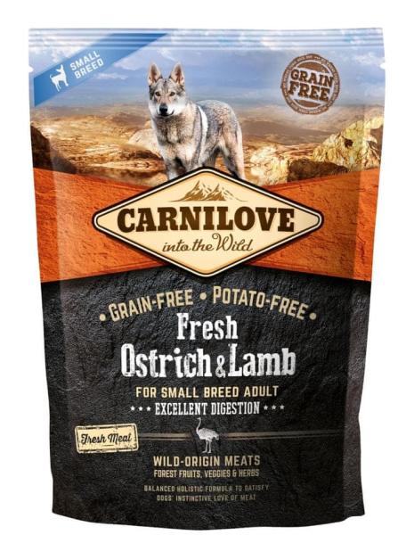 A CarniLove Adult Lazac egy gabona és burgonyamentes, ínycsiklandó prémium szárazeledel kistestű felnőtt kutyák számára. Az eledel friss hús, zöldségek, piros bogyós gyümölcsök, zöldségek és gyógynövények egészséges kombinációja. A strucchús alacsony zsír és koleszterin tartalommal rendelkezik. Kiváló aminosav és energiaforrás. A strucc és bárányhús ízletes k