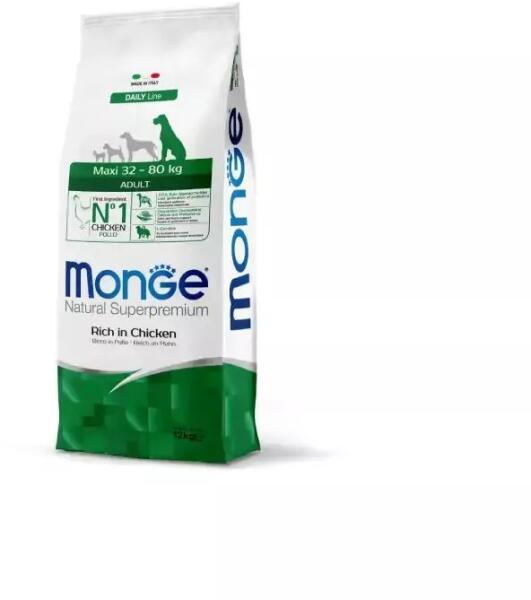 Monge Dog Daily Line Maxi AdultTeljes értékű szárazeledel nagytestű (32-80 kg) felnőtt kutyák számára csirkével. A kiváló minőségű alapanyagoknak és az olasz kutatómunkának köszönhetően egészséges táplálkozást biztosít kutyájának. A termék fő összetevője a csirke, amely könnyen emészthető és a friss hús hozzáadásának köszönhetően nagyon ízletes. A recep