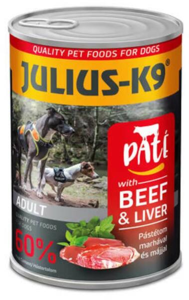 A JULIUS K9 Dog Paté marhával és májjal (400 g) ízletes, teljes értékű nedveseledel kutyáknak, természetes összetevőkből, adalékanyagok nélkül. A JULIUS-K9 Dog Paté Beef and Liver (Marha, Máj) 400g egy ínycsiklandó kutyakonzerv, amely gazdag marhahúsban és májban, finom pástétom formájában. A JULIUS K9 Dog Paté beef and liver egy ízletes és tápanyagokban gazdag nedve