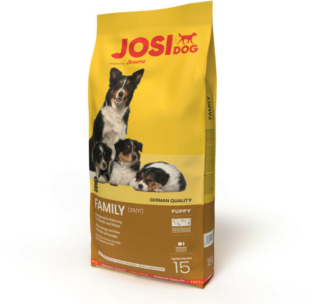 JOSIDOG FAMILYAz egész bagázs számára! A JosiDog Family egy speciális tenyésztáp vemhes kutyáknak és kölykeiknek. A kis kölyökkutyafogak könnyen megbirkóznak az apró falatkákkal, a speciális gluténmentes receptúra pedig a legfinomabb tápanyagokat tartalmazza a kiegyensúlyozott táplálkozás és az egészséges fejlődés érdekében.*Teljes értékű, nagyon kis falatokból