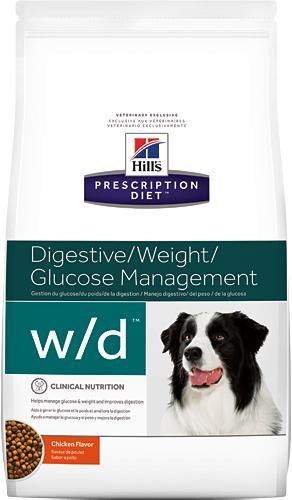 A Hill's Prescription Diet w/d Digestive/Weight/Diabetes Management száraz kutyatáp csökkentett zsírtartalmú, magasabb rosttartalmú táp, mely klinikailag bizonyított módon segíti a cukorbeteg kutyák gondozását, és segíti a hízásra hajlamos kutyákat az optimális testtömeg fenntartásában. Mielőtt állatgyógyászati diétás száraz- vagy nedves tápot ad kedvencének, mindenk