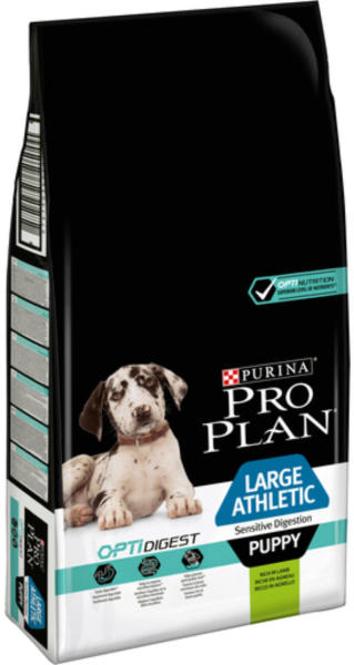 PRO PLAN Large Athletic Puppy OPTIDIGEST bárányban gazdag száraz kutyaeledel 12kg Teljes értékű állateledel érzékeny emésztésű, nagytestű, atletikus testfelépítésű kölyökkutyák számára. Vemhes és szoptató kutyák számára is megfelelő. Könnyen emészthető az érzékeny emésztésű kutyák számára. Prebiotikumokat tartalmaz, melyek tudományosan bizonyítottan növeli