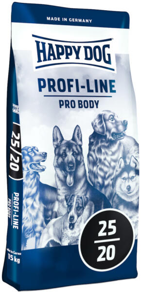 Teljes értékű állateledel magas energiaszükségletű felnőtt kutyák számára. A Happy Dog Profi 25-20 Pro Body speciális receptúra alapján készült magas energia tartalommal, sok zsírral és mérsékelt fehérjetartalommal. Az eledel biztosítja a stabil testfelépítést és segít a tökéletes testsúly fenntartásában a magas fizikai igénybevétel mellett. Érzékeny gyomrú kut