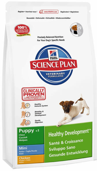 A Hill's Science Plan Puppy Small & Mini száraz kutyatáp egy teljes értékű táp nagyon kis testméretű fajtákba tartozó kölyökkutyák részére 1 éves korig. Alkalmazási javaslatok:- Kis testű és törpe fajtájú kutyakölyköknek az elválasztástól 1 éves korig. - Vemhes és szoptatós szukáknak. Nem ajánlott:- Macskáknak. - Elhízásra hajlamos, nem szoptatós kifejlett k