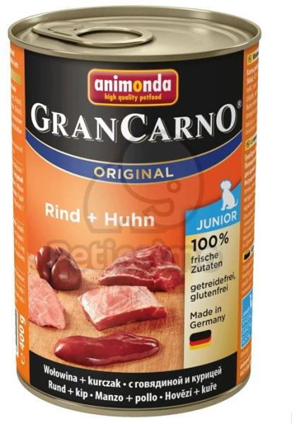 Animonda GranCarno Junior (marha+csirke) Teljesértékű eledel növésben lévő kutyusoknak. Kiszerelés: 400 g A kutya köztudottan a farkas leszármazottja. Tizenötezer emberek oldalán töltött év alatt a kutyák jelleme és kinézete rendkívüli változáson ment keresztül. Ezzel ellentétben a táplálkozási szokásaik és igényük a friss állati eredetű nyersanyagokra változatlan