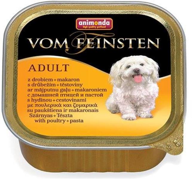 Animonda Vom Feinsten Adult (szárnyas + tészta) Teljesértékű eledel felnőtt kutyáknak. Kiszerelés: 150 g Az animonda Vom Feinsten Adult ellenállhatatlan étkezési élmény, nem csak a különösen válogatós kutyáknak. A Vom Feinsten Adult csúcsminőségű eledel, különösen sok gondosan válogatott húsos alapanyagból, 12 különböző változatban. Összetevők: 59% Hús és hús