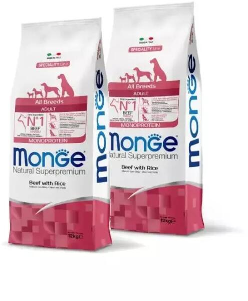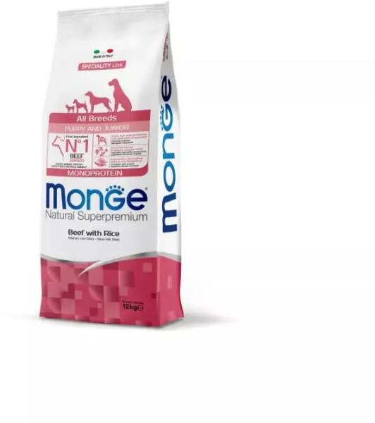 Monge Dog Speciality Line Monoprotein Puppy - Beef, RiceTeljes értékű szárazeledel kölyök kutyák számára. Kutyája egészsége garantált a kiváló minőségű alapanyagoknak és az olasz szakértői kutatásnak köszönhetően. Kizárólag egyféle állati eredetű fehérjét tartalmaz. Fő összetevője a marha, ami könnyen emészthető és a hozzáadott friss húsnak köszönhetően