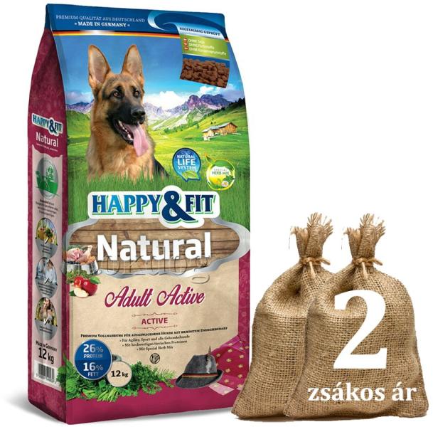 A Happy&Fit Natural Adult Active további jellemzői: Könnyen emészthető prémium táp, amely optimális minden olyan felnőtt kutyának, akinek energiaigénye megnövekedett. Kutyáink több energiát és zsírt égetnek el sporttevékenység és játék közben. Az ízletes tápszemek halból készült fehérjét is tartalmaznak A hőmérséklet csökkenésével, a téli időszakban a kü