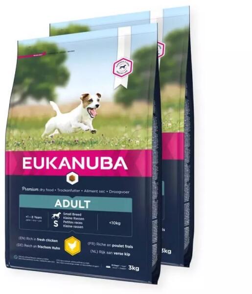 Adult Small Eukanuba Adult Small Breed teljes értékű száraz táp kistestű felnőtt kutyák számára. Az egyedülálló Aktív Felnőtt receptúránkat úgy alkottuk meg, hogy elősegítse az optimális kondíció fenntartását, a szálkás izomzat kifejlődését és a kiegyensúlyozott energiaszintet. Kis termetű Kutyafajták számára, 1-8 éves kor között. A kisméretű ízletes táps