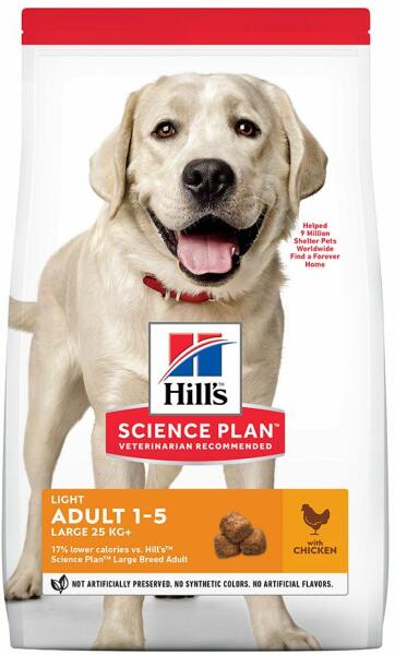 Hill's science plan light large breed adult kutyatáp csirkével. A Hill's Science Plan LIGHT LARGE BREED ADULT Kutyaeledel kiegyensúlyozott táplálást biztosít azoknak a kevésbé aktív nagytestű felnőtt kutyáknak, akiknek alacsonyabb kalóriabevitelre van szükségük az egészséges testsúly és életstílus fenntartásához. Csak azért mert nagytestű felnőtt kutyájának nagy az é