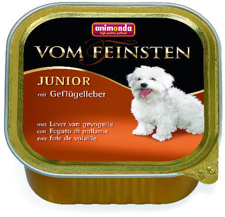 Animonda Vom Feinsten Junior (baromfimáj) Teljes értékű eledel növésben lévő kutyáknak. Kiszerelés: 150 g Az Animonda Vom Feinsten Junior illeszkedik a kölykök és fiatal kutyusok táplálkozási igényeihez. Az összetétel tiszta, húsos alapanyagokból áll, gabona, szója, cukor, valamint mesterséges tartósítószerek és színezékek nélkül. Három fajtából álló választé