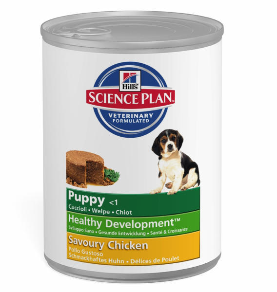 Hill's SP Puppy Chicken – Kis- és közepes testű fajtákba tartozó kölyökkutyák számára, az elválasztástól 1 éves korig valamint vemhes és szoptató szukáknak ajánlott csirkehúsos konzerv. A szoptatás második felében a kölyökkutyák a szukával etetett táppal azonos táppal választhatók el, ami megkönnyíti az elválasztás folyamatát. A száraztáp-formulák nagy menn