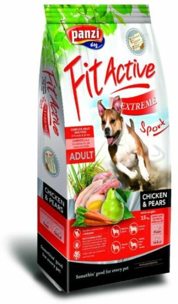A Fit Active ExtremeSport Chicken&Pear egy tökéletes és kiegyensúlyozott prémium minőségű szárazeledel magas aktivitású, kutyák számára. Csúcsminőségű eledel aktív életet élő és/vagy sportoló, munkakutyák számára, könnyen emészthető csirkehúsból továbbá a magas igénybevételhez szükséges kiemelkedő mennyiségű zsírral és szénhidráttal. Tartalmazza min