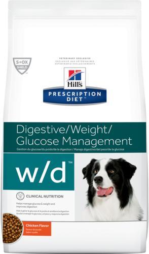 A Hill's Prescription Diet w/d Digestive/Weight/Diabetes Management száraz kutyatáp csökkentett zsírtartalmú, magasabb rosttartalmú táp, mely klinikailag bizonyított módon segíti a cukorbeteg kutyák gondozását, és segíti a hízásra hajlamos kutyákat az optimális testtömeg fenntartásában. Mielőtt állatgyógyászati diétás száraz- vagy nedves tápot ad kedvencének, mindenk