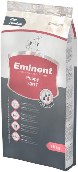 Eminent Puppy 30/17 Teljes értékű kutyatáp kis- és közepes testű kölyökkutyáknak, valamint vemhes és szoptató szukáknak A kis- és közepes testű kutyafajták gyorsabban válnak felnőtté, mint a nagytestű kutyák. Ez a gyors növekedés magasabb tápszükséglettel jár, melyet elsősorban a magasabb fehérje és zsír (csúcsminőségű baromfizsír és kókuszolaj) tartalommal v