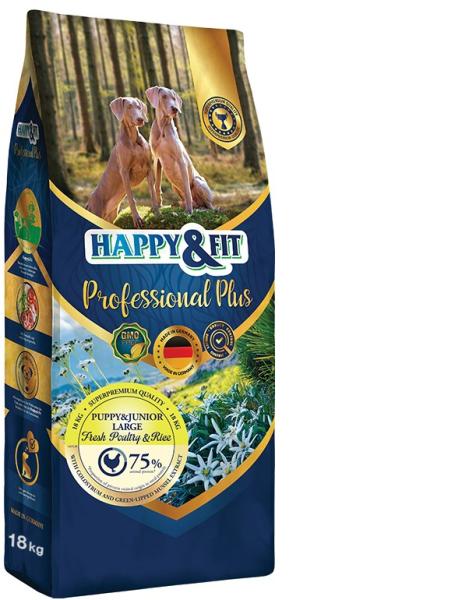 A Happy&Fit Professional Plus Puppy & Junior Large prémium kutyatáp kifejezetten nagytestű kölyökkutyák számára készült, hogy biztosítsa számukra a maximális növekedést és egészséget. A friss baromfihússal és rizzsel gazdagított receptúra segít abban, hogy a kölyökkutyák minden fontos tápanyagot megkapjanak a megfelelő fejlődéshez. Főbb Összetevők: Friss Ba