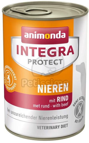 Animonda Integra Protect Nieren kutya marhahús 400g - Termékleírás INTEGRA PROTECT Nieren - veseelégtelenségben szenvedő kutyák számára marhahús ízesítéssel. A veseelégtelenségben szenvedő kutyáknak speciális, csökkentett foszfor- és fehérjetartalmú eledelre van szükségük. Beteg kutyában a fehérje-anyagcsere végtermékeinek kiválasztása erősen korlátozott, így a m