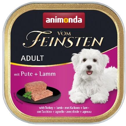 Animonda Vom Feinsten Adult (pulyka + bárány) Teljesértékű eledel felnőtt kutyáknak. Kiszerelés: 150 g Az animonda Vom Feinsten Adult ellenállhatatlan étkezési élmény, nem csak a különösen válogatós kutyáknak. A Vom Feinsten Adult csúcsminőségű eledel, különösen sok gondosan válogatott húsos alapanyagból, 12 különböző változatban. Összetevők: 63% Hús és hússz