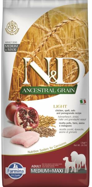 Az N&D Ancestral Grain csirke, tönköly, zab&gránátalma egy teljes értékű ízletes száraztáp közepes és nagytestű felnőtt kutyák számára. A csirke és pomegranate isteni kombináció. Változatossá tehetjük a kiskedvencek étrendjét. Alacsony gabonatartalmú eleség. Kiegyensúlyozott arányban tartalmaz állati eredetű fehérjét 60%, gyümölcsöt és zöldséget 20%,