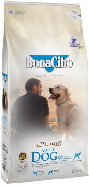 Felnőtt kutyáknak minden testméretre A BonaCibo Adult Dog fehérjék, zsírok és szénhidrátok optimális keverékéből készül, annak érdekében, hogy a kutyák egészséges növekedését támogassa. Omega-3 zsírsavakban gazdag táp, amelyben megtalálhatóak esszenciális ásványi anyagok és vitaminok az egészséges tápanyagcseréért. ÖSSZETEVŐK: dehidrált csirkeprotein(