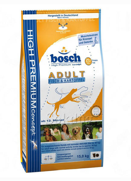 BOSCH Adult Fish & Potato 15kg - Termékleírás A Bosch Adult Fish & Potato ideális eledel minden fajta felnőtt kutyának, halat és burgonyát tartalmaz. A megfelelő energiaérték, a fehérjetartalom és a kagylókivonat segít elkerülni a túlsúly veszélyeit. A felnőtt kutyáknak és az egyes tápanyagok emésztési zavaraiban szenvedőknek érzékeny az emésztőrendszerük, ez