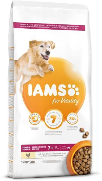 IAMS Dog Food Sernior nagytestű fajták 12 kg IAMS for Vitality szárazeledel idősebb, nagytestű kutyáknak, friss csirkehússal. Az IAMS speciális táplálékot biztosít ízletes termékek széles választékában, amelyek pozitívan hozzájárulnak kutyája egészségéhez és vitalitásához. Fedezze fel a kiváló minőségű fehérjét tartalmazó, teljes értékű és kiegyensúlyozott