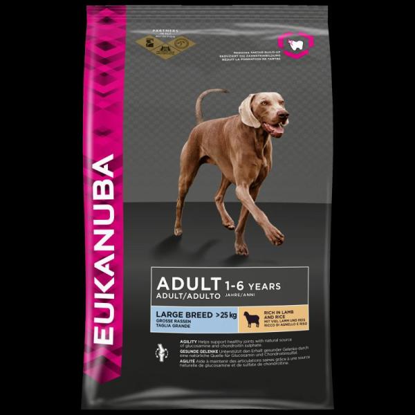Eukanuba Adult Large LambRice LEGFONTOSABB ELŐNYÖK - Tarkoin suunniteltu kuitusekoitus, joka sisältää prebiootteja (FOS), MOS:eja ja juurikasmassaa, edistää tervettä ruoansulatusta - Glukosamiini auttaa pitämään nivelet terveinä ja kalsium ylläpitämään vahvoja luita - L-karnitin a megfelelő testsúly beállításának és fenntartásának elősegítéséért - Erityinen nappuloide