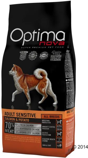 Az Optimanova Adu lt Sensitive Salmon & Potato egy ízletes, teljes értékű lazacos burgonyás száraztáp felnőtt kutyák számára. Kifejezetten érzékeny gyomrú kutyák számára kifejlesztett eledel. Kiválóan emészthető tápanyagok biztosítják a maximális felszívódást, így serkentve a kutyusok bélműködését és emésztését. Ínycsiklandó lazacos-burgonyás ízkombin