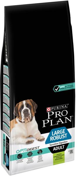 Termék információk A Purina® Pro Plan® Large Robust Adult Optidigest® formulával a teljes értékű kutyaeledel nagytestű, robusztus testalkatú, érzékeny emésztésű felnőtt kutyák számára. Az Optidigest® formula válogatott összetevők kombinációja, vitaminokat és ásványi anyagokat tartalmaz a nagytestű kutyák különleges igényeinek megfelelően, és segít jó kondíci